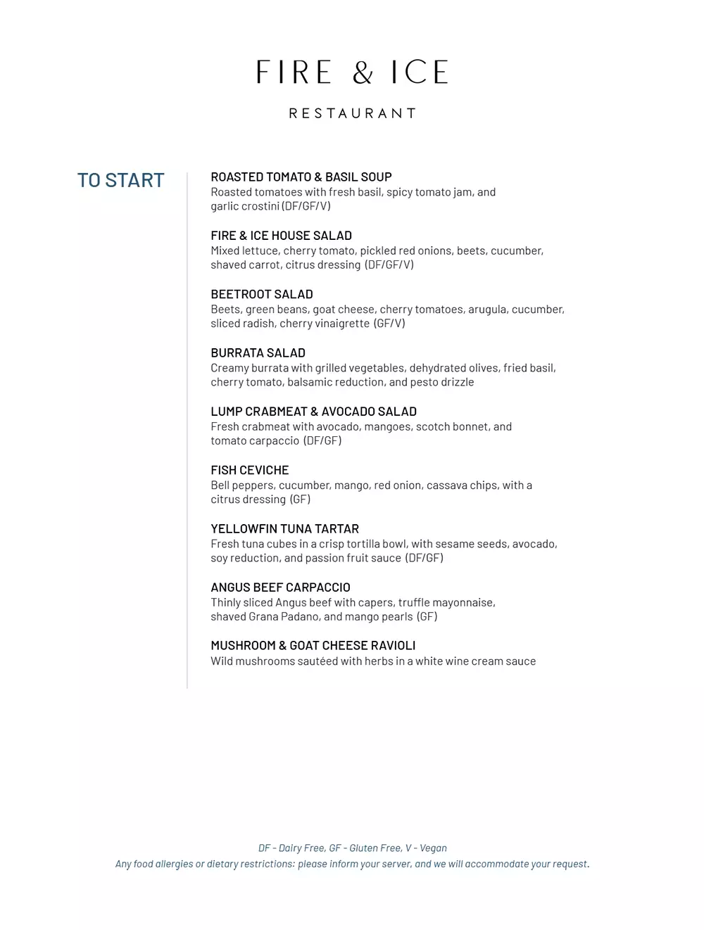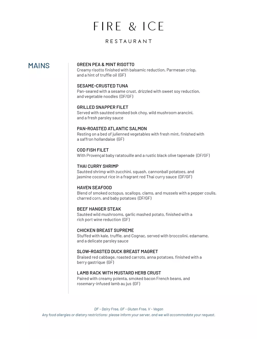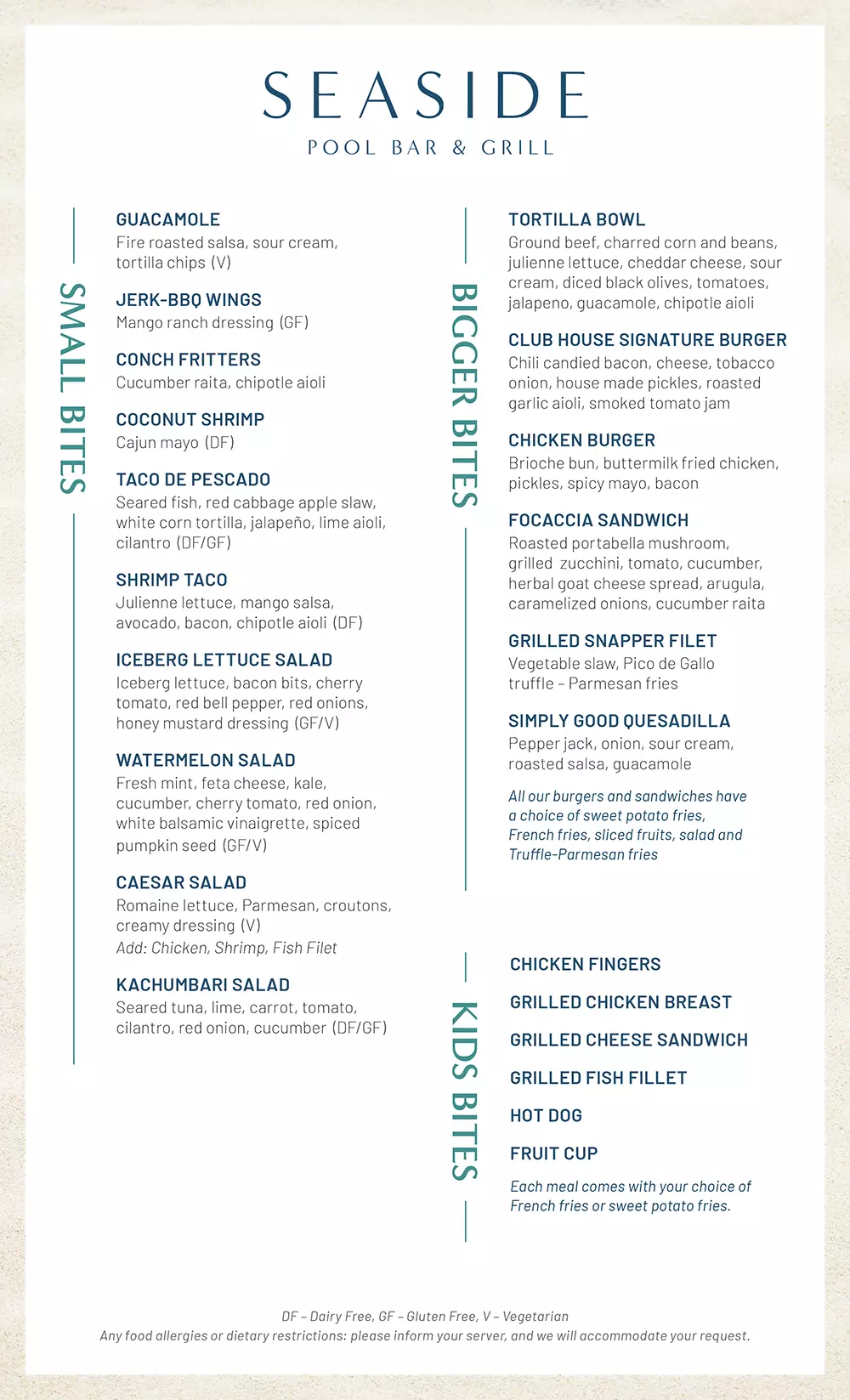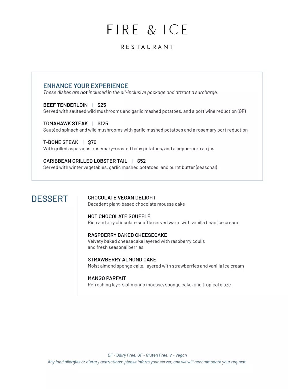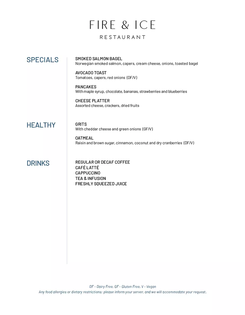 All menus are samples and subject to change based on availability.