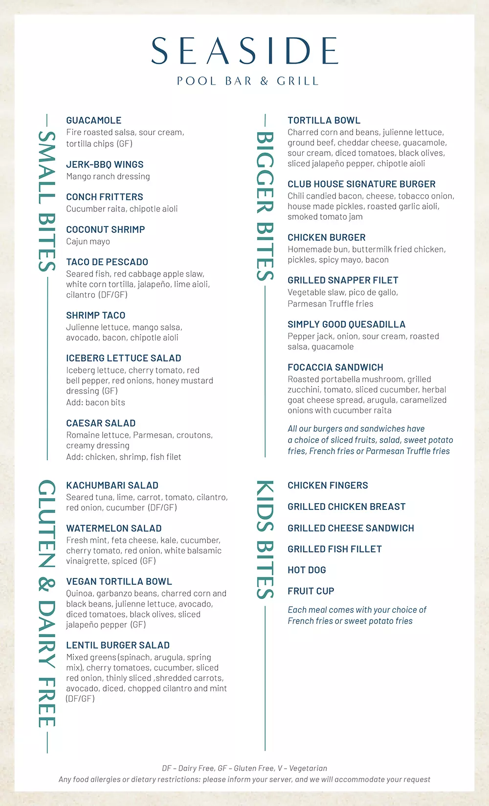 All menus are samples and subject to change based on availability.